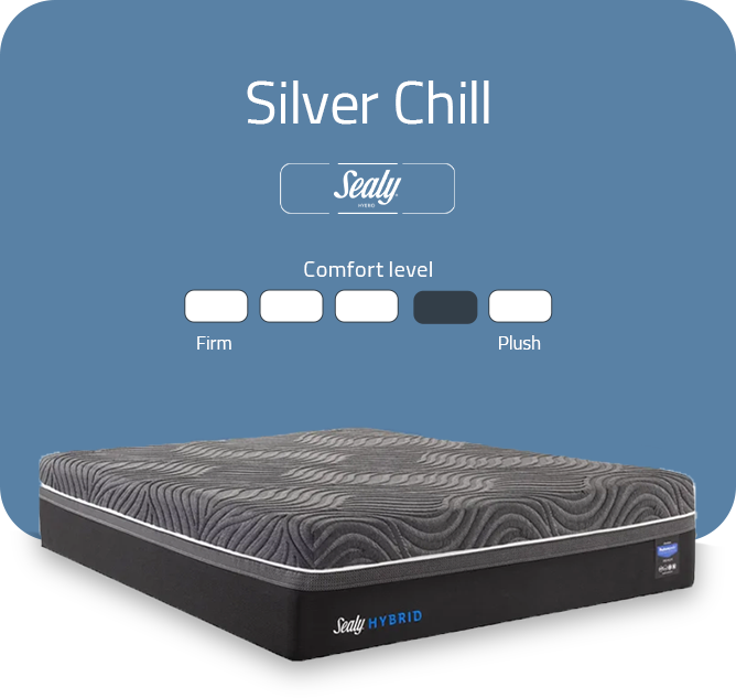 The Silver Chill Medium Mattress belongs to the hybrid category, and our innovative hybrid design delivers the best of both worlds: gentle pressure-relieving comfort on top, with deep, stable support underneath. It also features Posturepedic’s exclusive memory foam found in the high-performance hybrid model.